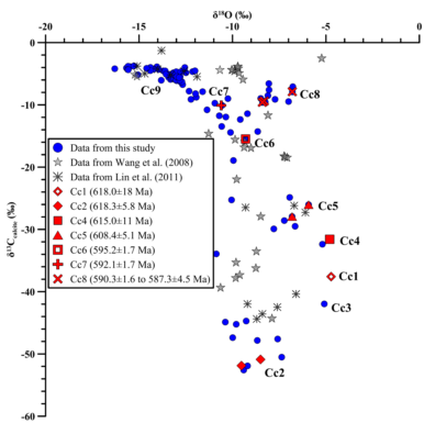 Hongwei Ping, Xin Yang, Xiaofeng Liu, Xiaoqiang Li, Honghan Chen, Se Gong, and Simon C. George (2025). Thermogenic methane release after Marinoan glaciation induced extremely 13C-depleted calcite precipitation in cap dolostones. Geology, //doi.org/10.1130/G53668.1