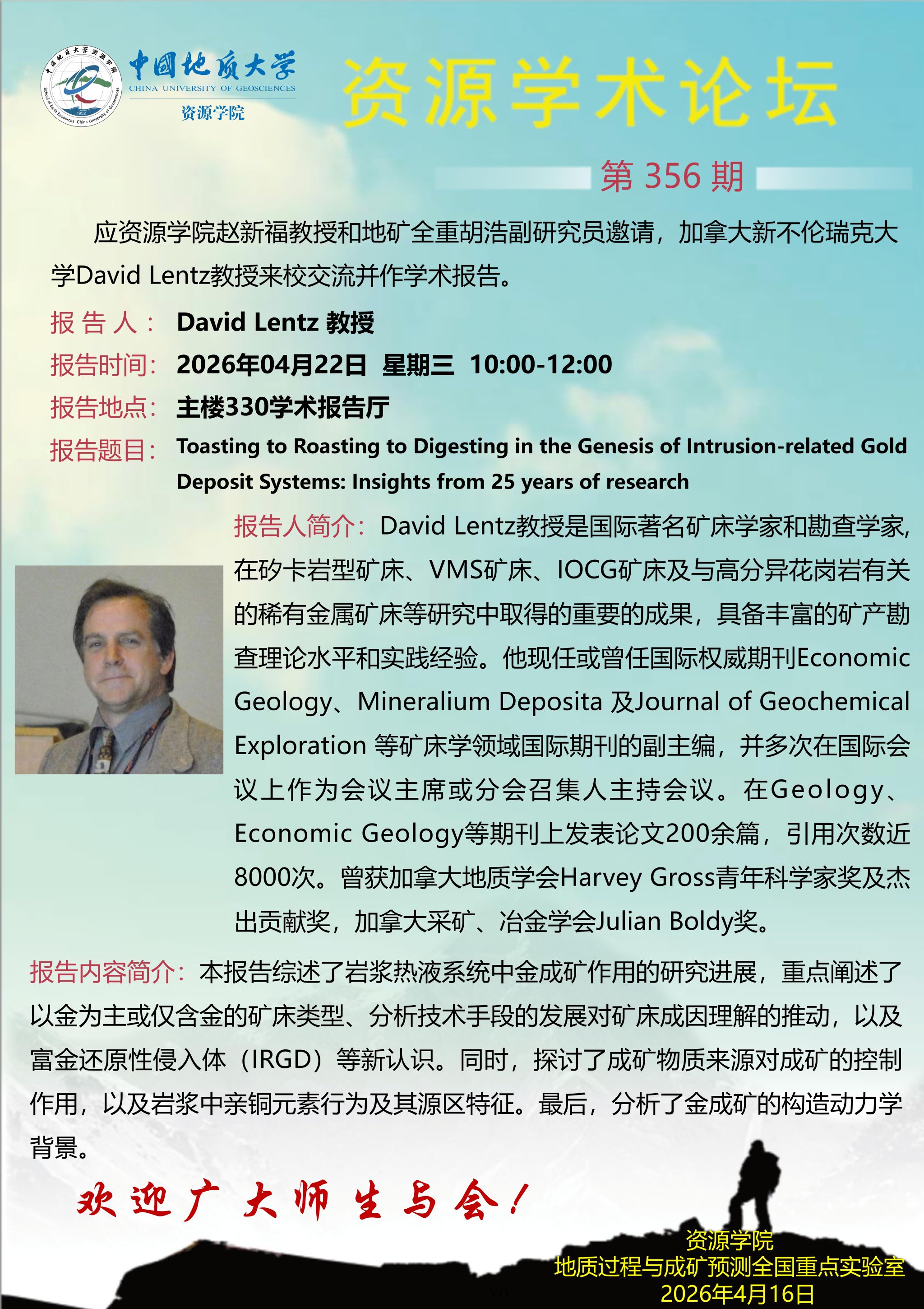 【4月22日】第356期资源学术论坛:David Lentz学术报告