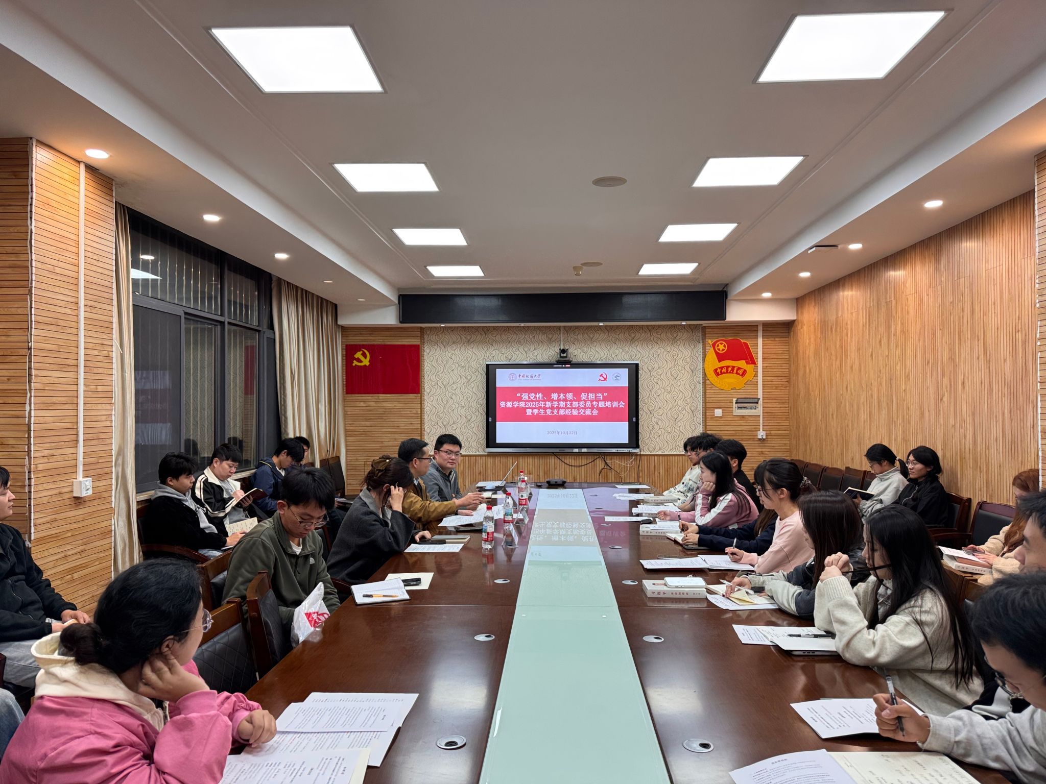 (通讯 何韵冰 彭鑫 摄影 党建办)为夯实基层党组织建设,提升支部委员履职能力,2025年10月22日,国产成人黄色直播网站 在文化楼201会议室举行2025年新学期支部委员培训会暨学生党支部经验交流会。学院党委副书记谭文伦、学生党建办公室主任彭鑫、研究生辅导员林心悦、党建兼职辅导员张少龙,以及全体学生党支部书记、支委和学生党建办公室工作人员共同参会。会议由彭鑫老师主持。